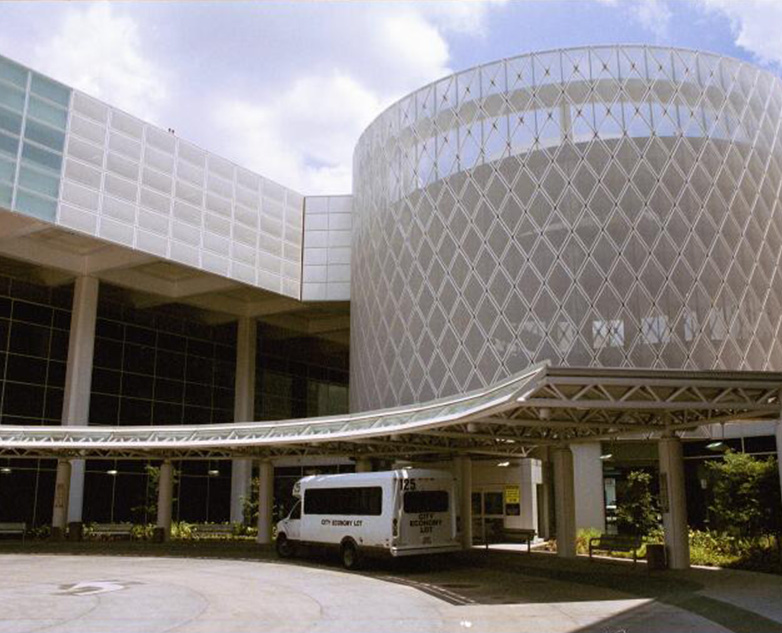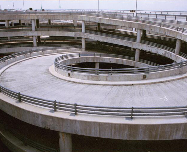 The Terminal A/B Parking Garage at George Bush Intercontinental Airport is a monumental 2,000,000-square-foot, eight-level cast-in-place concrete structure designed to accommodate 5,000 vehicles. Serving as a critical access point for two of the airport’s busiest terminals, the garage was constructed using over 102,000 cubic yards of concrete and features a flat plate and beam structural system. Its exterior is clad in a combination of precast glass and architectural aluminum screen wall panels, blending durability with a sleek, modern aesthetic that complements the airport’s architecture.