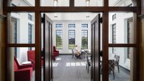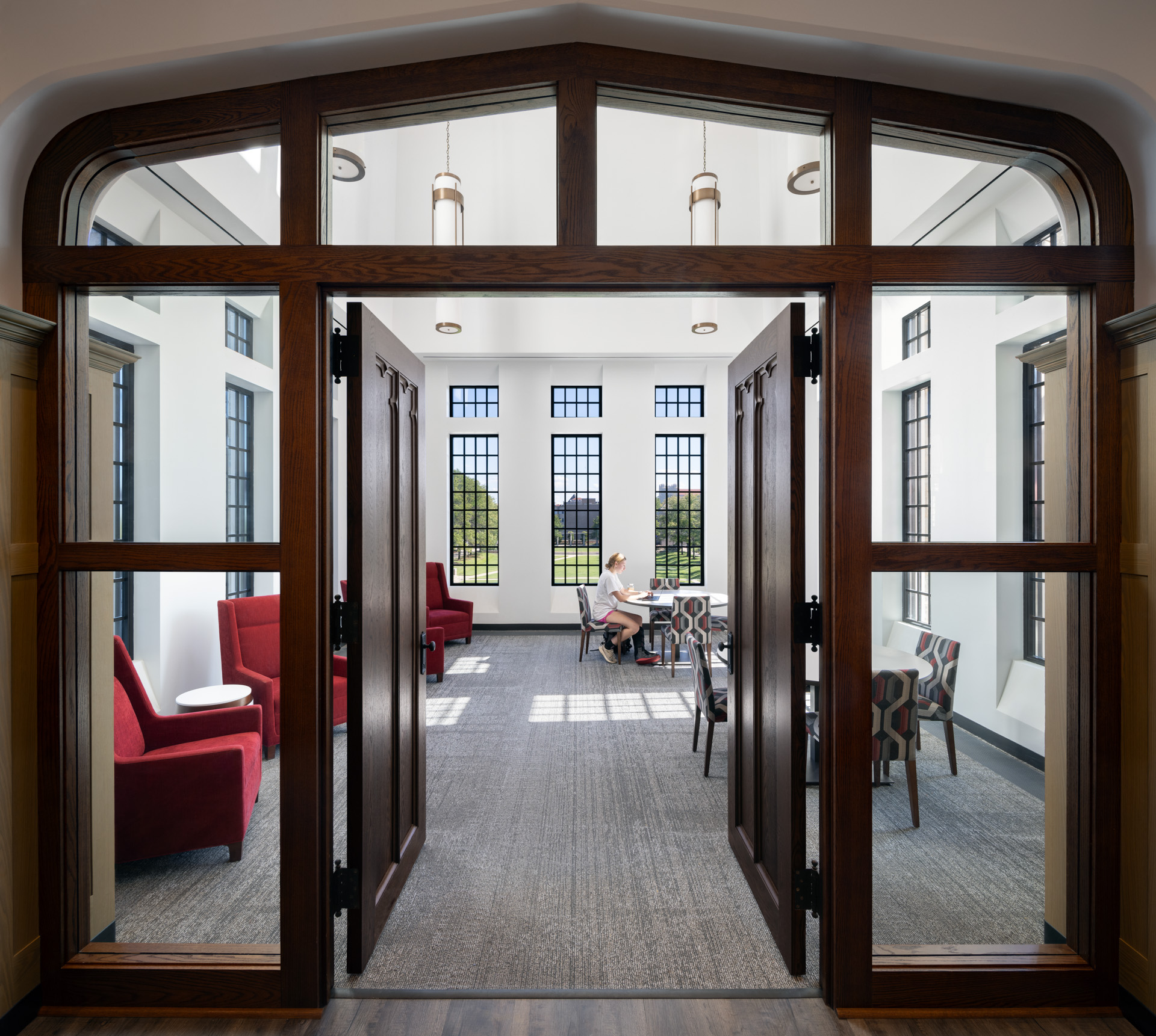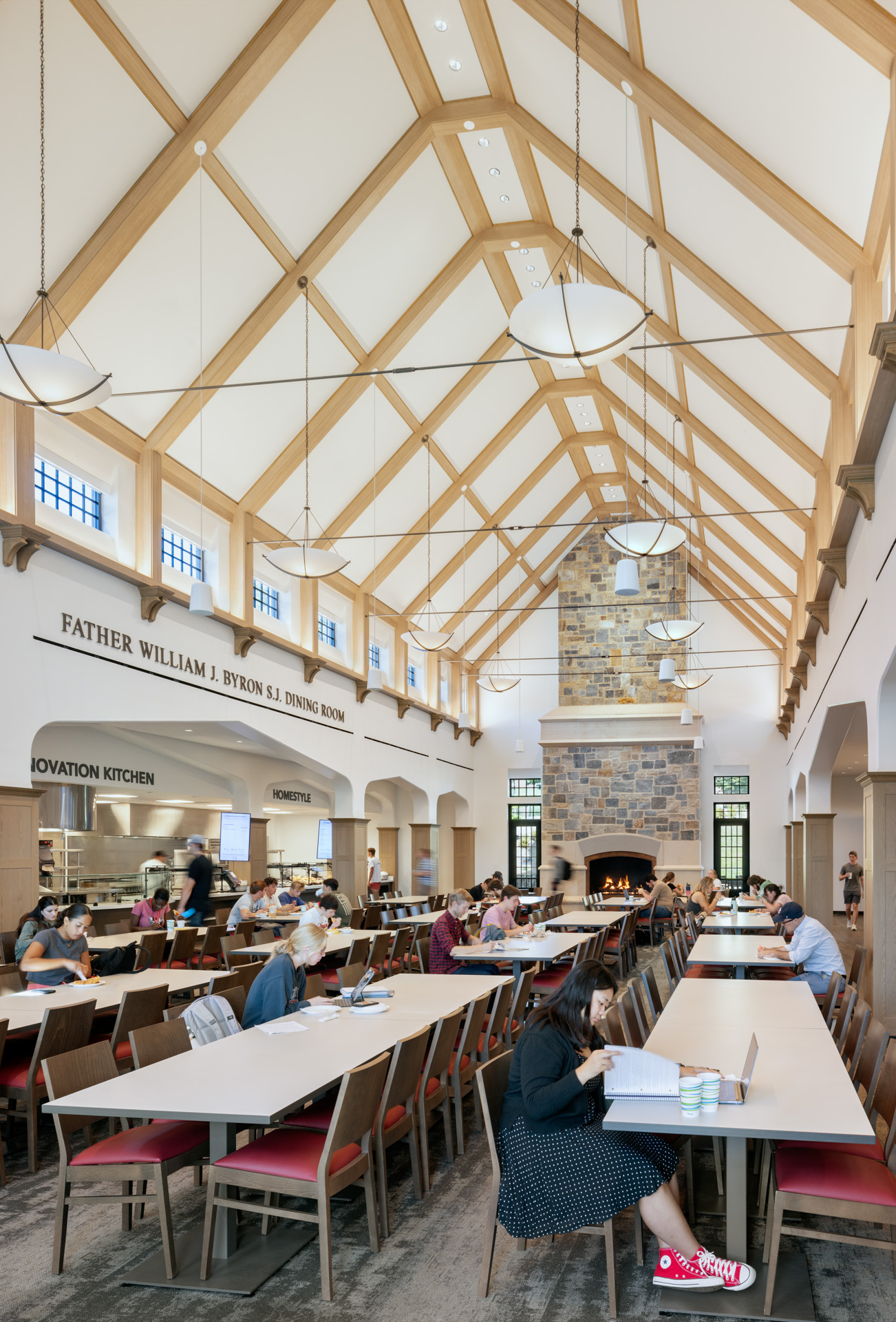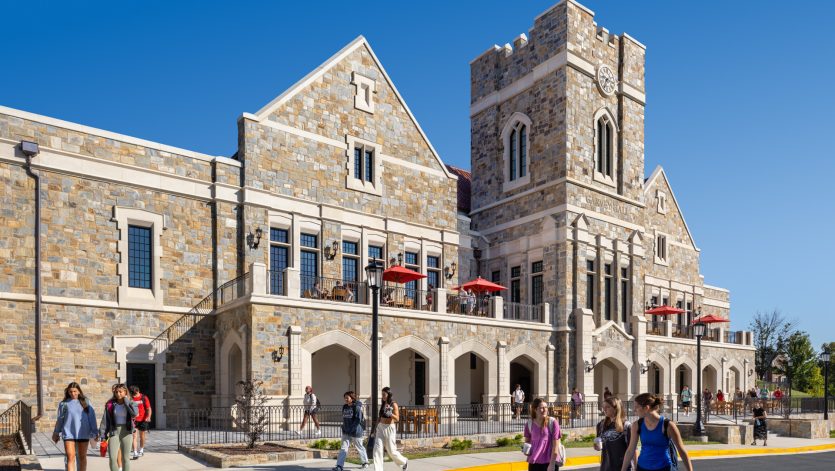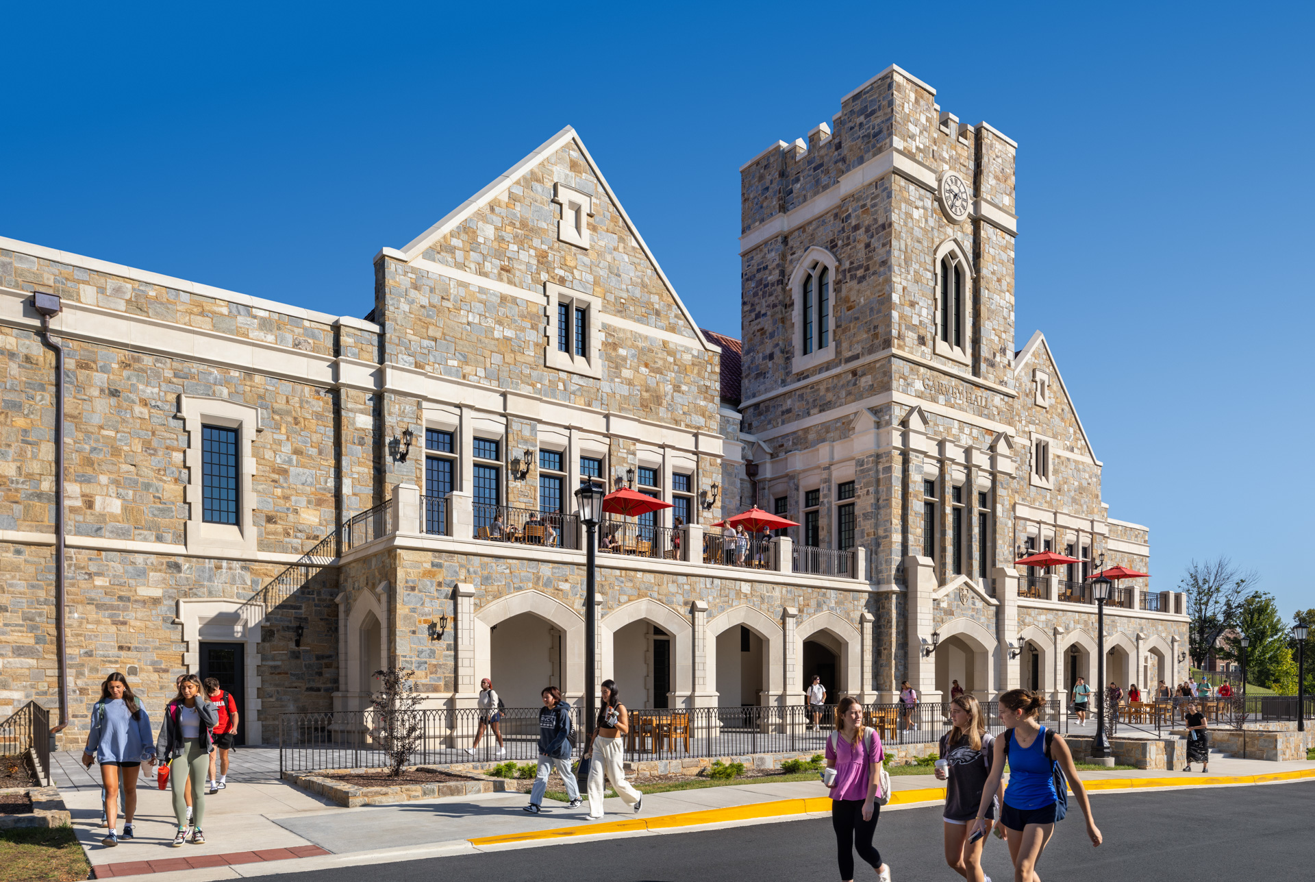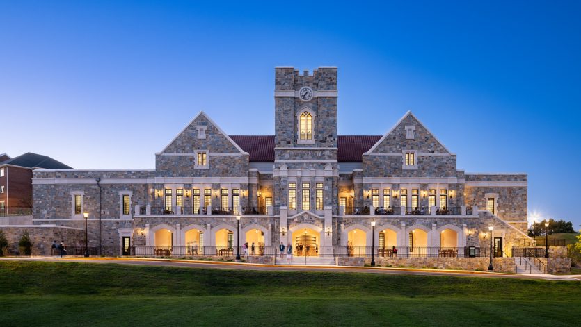 Garvey Hall at The Catholic University of America in Washington, D.C. is a 34,823-square-foot, LEED®-targeted dining facility with 443 seats, built into a hillside with dual ground-level access. The project involved demolishing an existing dormitory, relocating utilities and roadways, and constructing a steel-framed structure with a refined stone façade. One of the most complex challenges was installing precast arches in 10–12 heavy segments due to weight constraints. The team used cardboard templates and forklifts to align each piece precisely with structural steel supports. Another challenge was coordinating work on the high-vaulted ceiling, where only one trade could access the 35-foot height at a time due to slab weight limits, requiring meticulous sequencing among MEP and drywall teams. Additionally, unforeseen substrate issues and supply chain delays forced the team to resequence the stone façade installation, working elevation by elevation to maintain progress. Despite these hurdles, the project was completed successfully through proactive planning and collaboration across all trades.