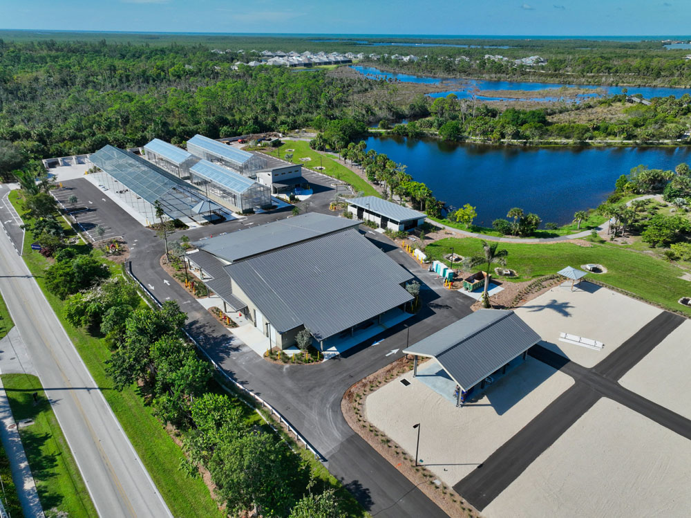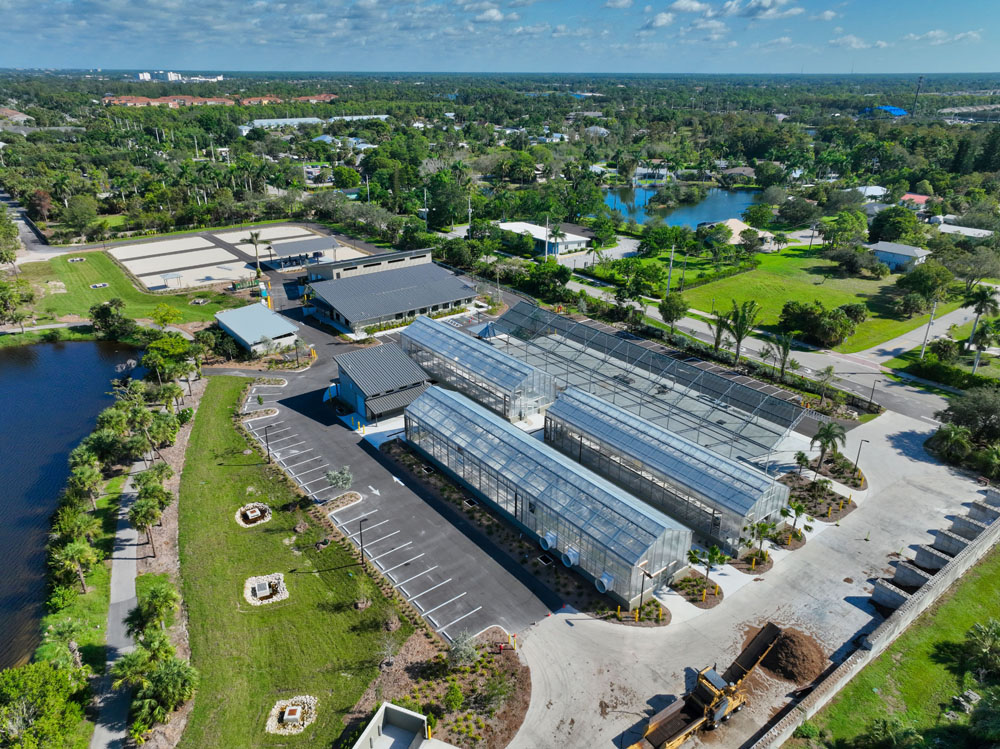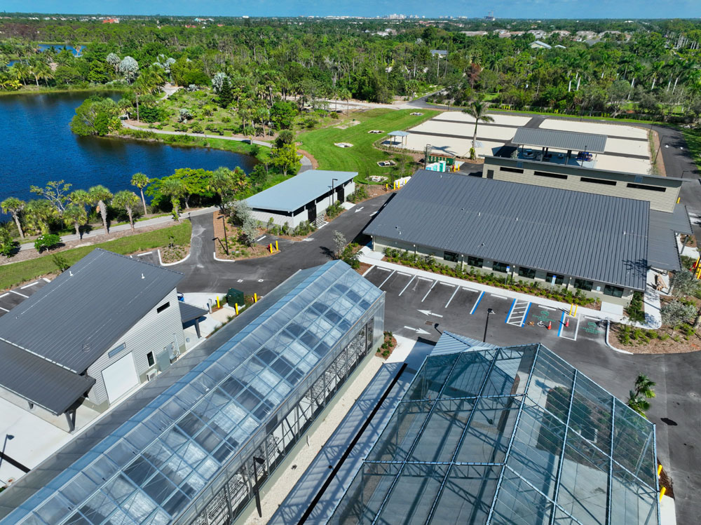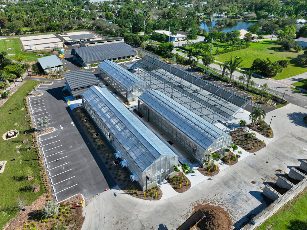 The Evenstad Horticulture Campus is a new growing facility at Naples Botanical Garden that supports the Garden’s mission of developing nature-based environmental solutions, expanding its tropical plant collections, and enhancing 170 acres of cultivated gardens and native habitat. The campus features a state-of-the-art greenhouse complex comprised of a 10,000-square-foot shade house, a 4,300-square-foot propagation house, two connected greenhouses totaling 6,400 square feet, and a 1,000-square-foot potting house. These specialized structures provide controlled environments to grow and care for a vast array of tropical and subtropical plants, ensuring the Garden can propagate rare species and intensify conservation efforts on-site.